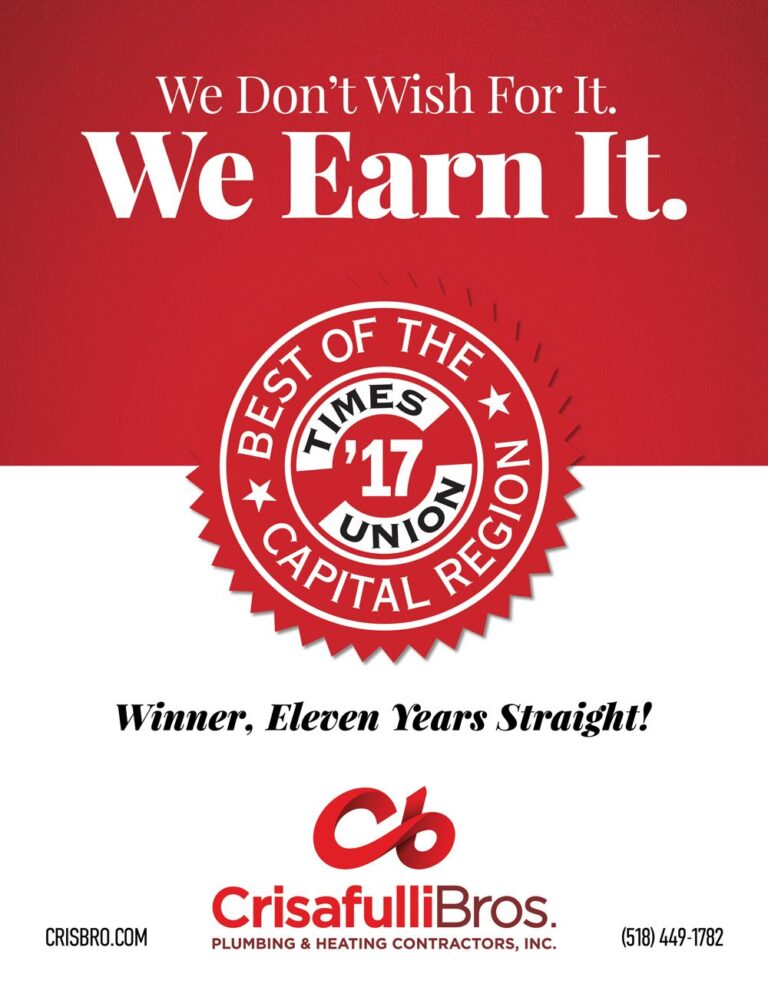 Crisafulli Bros. has been named the BEST by residents of the Capital Region in the annual Times Union readers poll again in 2017. It is the 11th year in a row Crisafulli Bros. has received this honor.